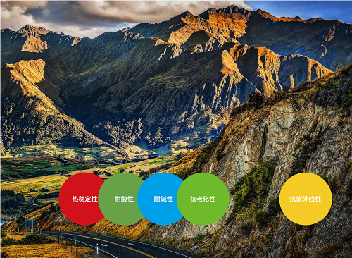 体积密度为 2.8 ~ 3.3g/cm3,致密者压缩强度很大,可高达 300MPa。玄武岩耐久性甚高,节理多,且节理面多成六边形。气孔多,又相当坚硬,有隔音、隔热等特点,同时还具有耐磨、吃水量少、抗压性强、压碎值低、沥青粘附性、耐高温性能好等优点。本公司生产的高温陶瓷彩砂为玻纤胎沥青瓦覆面产品,并多次荣获国际质量金奖,为玻纤胎沥青瓦的覆面材料质量提供了可靠保证。